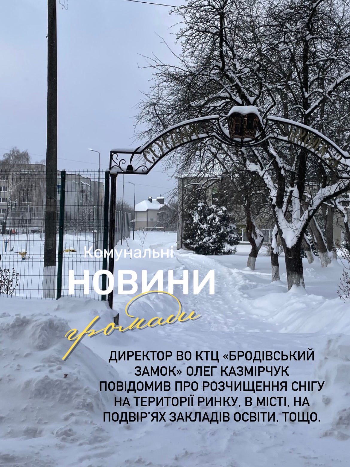 🔵Директор ВО КТЦ «Бродівський замок» Олег Казмірчук повідомив про розчищення снігу на території ринку, в місті, на подвірʼях закладів освіти, тощо.