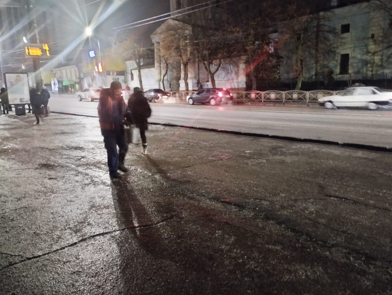 Комунальники посипають протиожеледною сумішшю дороги (в першу чергу, спуски та підйоми, маршрути громадського транспорту), місця активного руху пішоходів, зупинки громадського транспорту.