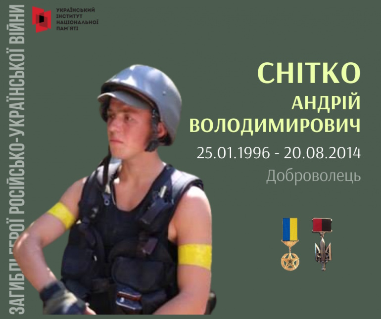 Андрій Снітко з юних років був активним, свідомим і небайдужим до долі своєї держави. Він брав активну участь у Революції Гідності, де загартувався його характер і сформувалося глибоке переконання, що майбутнє України потребує рішучих і відповідальних дій. Із початком російсько-української війни Андрій неодноразово звертався до військкоматів із проханням мобілізувати його на захист країни, однак щоразу отримував відмову — на той час йому лише виповнилося 18 років.