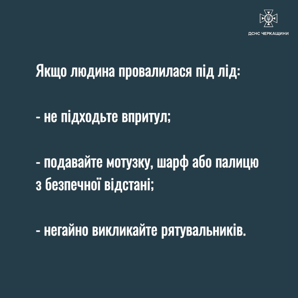 ▪️ подавайте підручні засоби з безпечної відстані: мотузку, палицю, шарф;