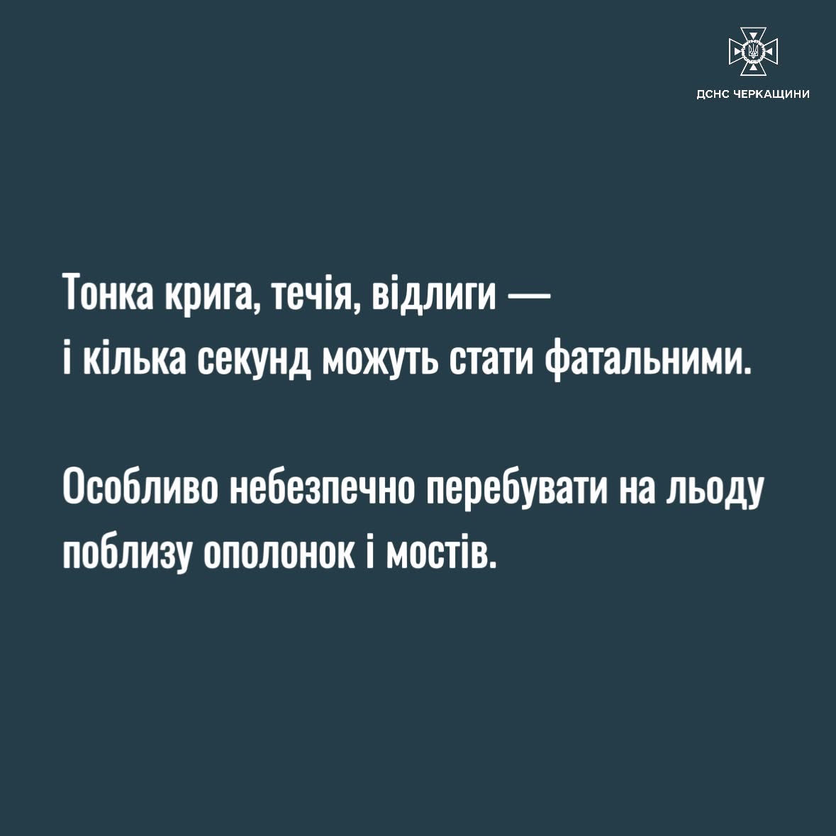 Зимові водойми можуть здаватися безпечними, але тонка крига — одна з найпідступніших небезпек зими. Особливо ризиковано виходити на лід під час відлиги, біля течії, мостів або очерету.
