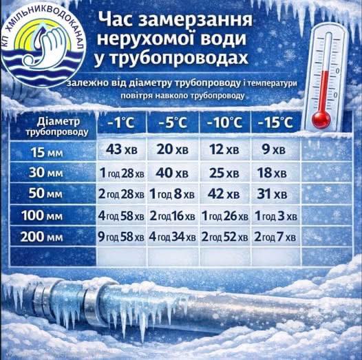 У КП «Хмільникводоканал» Хмільницька міська рада попереджають: через глибоке промерзання ґрунту зростає ризик замерзання водопровідних і каналізаційних труб, особливо там, де вода не рухається.