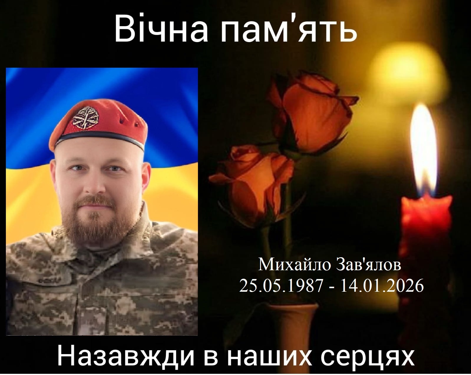 Солдат Михайло Зав’ялов, 1987 року народження, водій-електрик взводу зв’язку, загинув 14 січня 2026 року під час виконання бойового завдання біля села Новоандріївка Краматорського району Донецької області.
