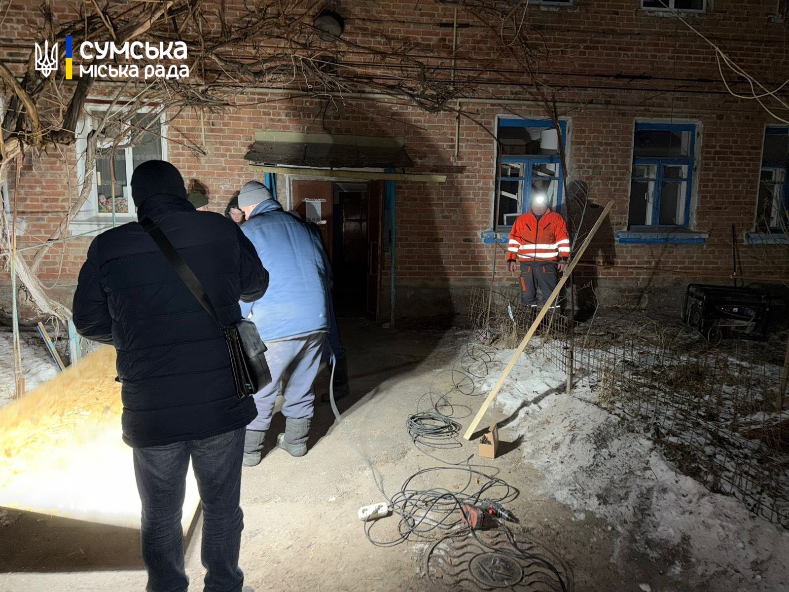Для виконання першочергових аварійних робіт були видані будівельні матеріали від Департаменту інфраструктури міста та ГО «Проліска».