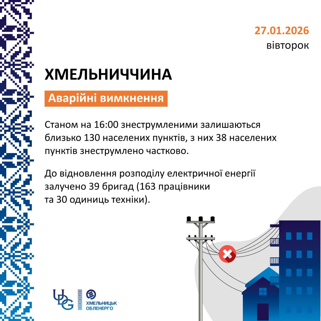 📞 Кол-центр АТ «Хмельницькобленерго» працює в посиленому режимі. Повідомити про виявлені пошкодження електромереж та обриви проводів можна за телефонами для повідомлень про аварійні ситуації: 067 010 50 62 та 050 010 50 62.