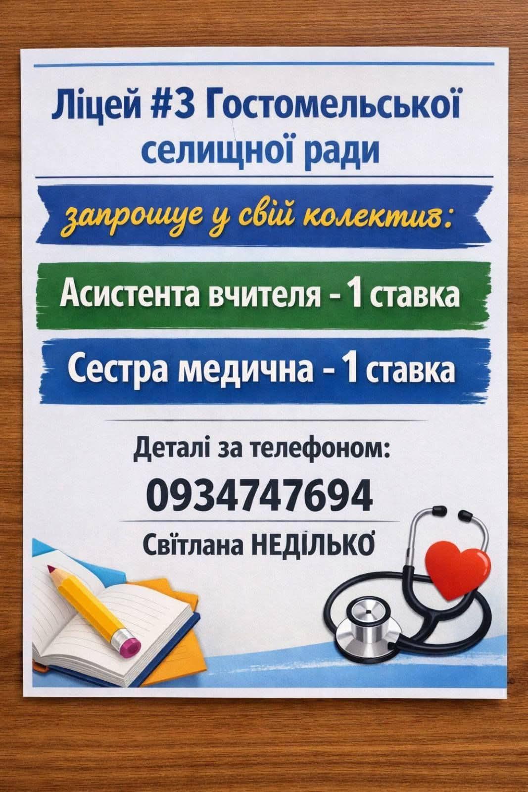 Ліцей №3 Гостомельської селищної ради запрошує на роботу!