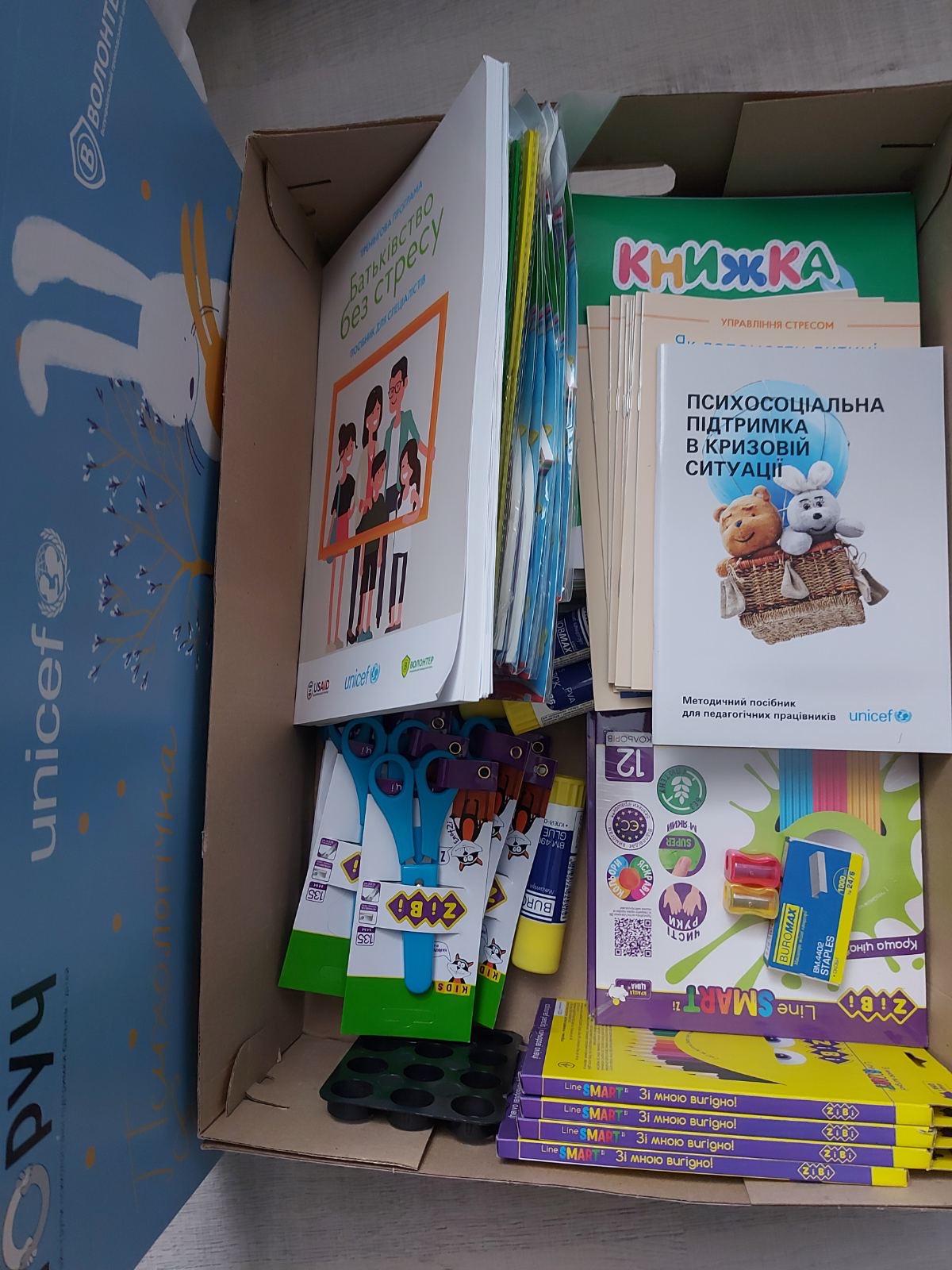 Найактивнішим учасникам проєкту в подарунок дітям передали канцелярське приладдя, настільні ігри для розвитку та психологічного розвантаження.