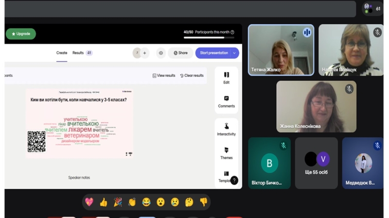 Позитивну атмосферу для створення інтерактивного завдання з використанням цифрового інструменту Mentimeter cтворила регіональна координаторка проєкту Тетяна Жалко, доцент кафедри теорії та методики викладання шкільних предметів, кандидат філологічних наук Волинського інституту післядипломної педагогічної освіти.