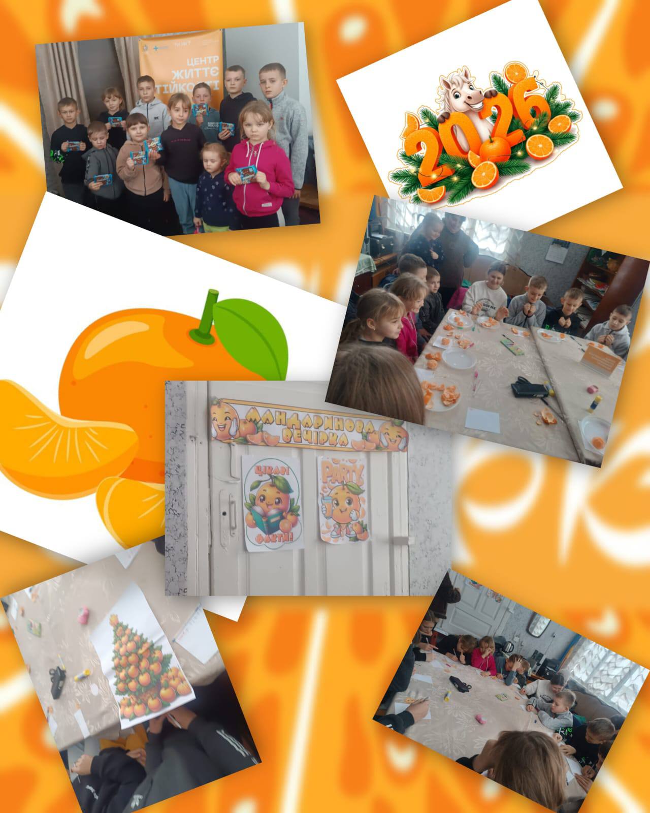 Мандаринова вечірка об’єднала учасників у атмосфері легкості, сміху та щирих емоцій. Ми грали, змагалися у веселих конкурсах, відгадували загадки й відкривали цікаві факти про мандарини – фрукт, який асоціюється з теплом, дитинством і святковим настроєм.