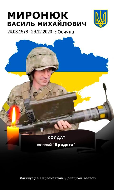 29 грудня минає два роки, як поклав життя, захищаючи рідну землю від російських окупаційних військ, заради нашого спокійного сьогодення наш герой-земляк МИРОНЮК Василь Михайлович (24.03.1978-29.12.2023).