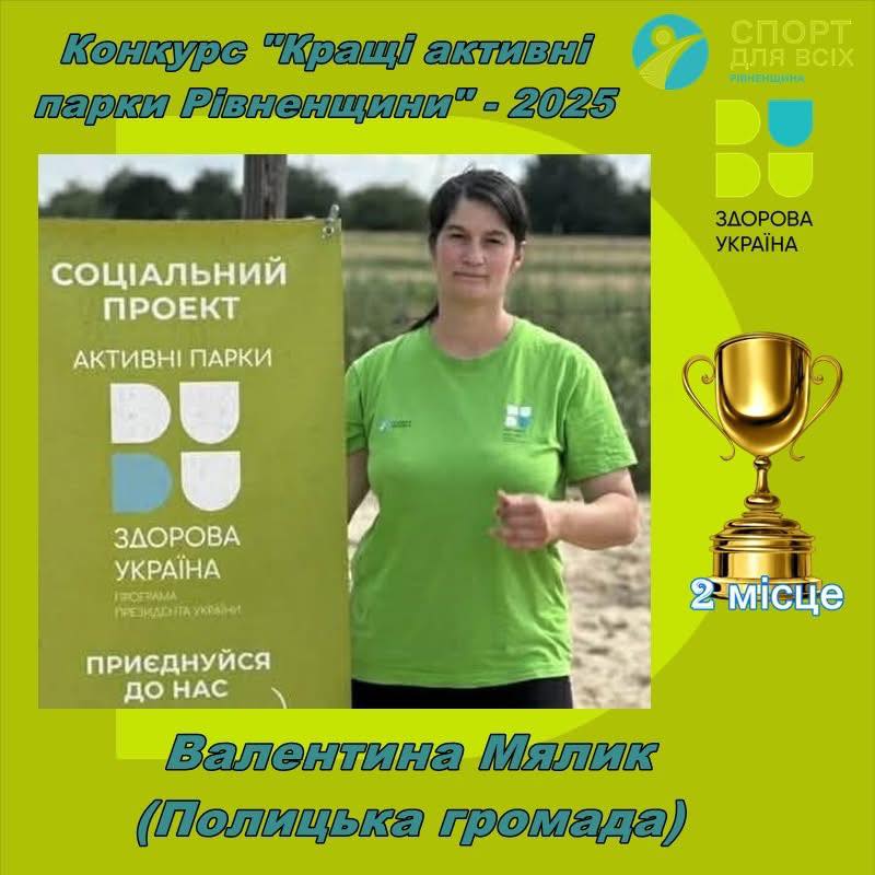 ℹ З метою підтримки, заохочення та мотивації координаторів, комунальний заклад «Обласний центр фізичного здоров’я населення «Спорт для всіх» Рівненської обласної ради» спільно з Відділенням НОК України в Рівненській області традиційно організовує конкурс «Кращі «Активні парки» Рівненщини». Під час визначення переможців за підсумками 2025 року враховувалися кількість проведених заходів, число їх учасників, а також активність у загальнодоступній групі проєкту в соціальній мережі Facebook.