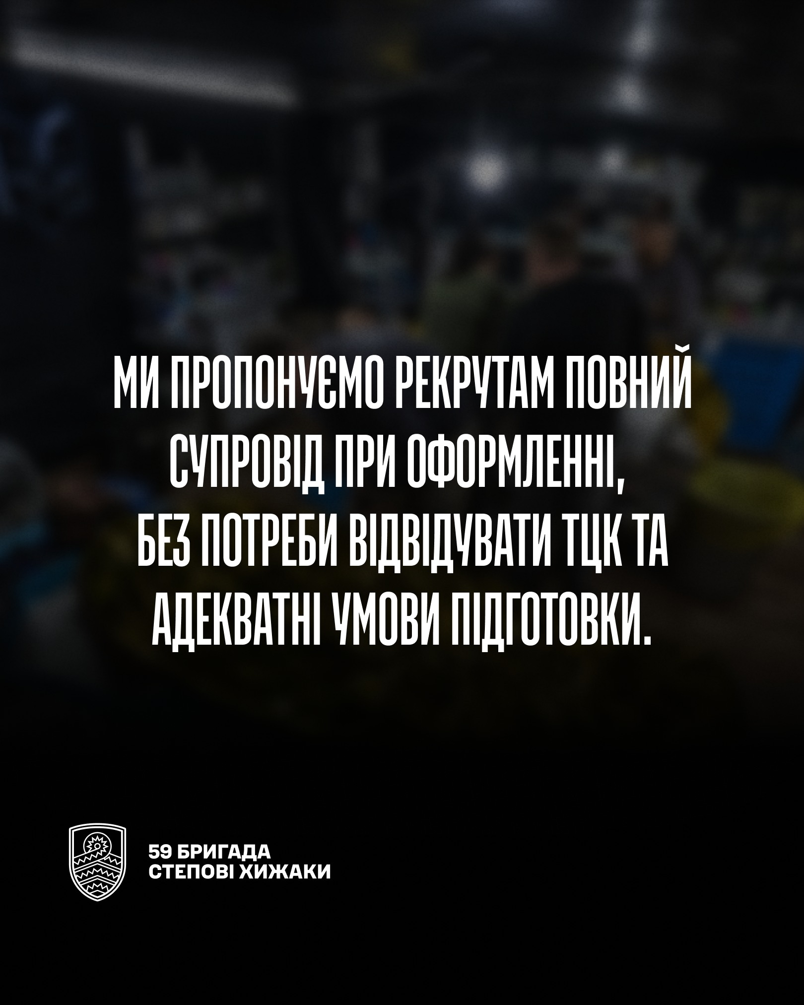 Ми пропонуємо рекрутам супровід при оформленні, без потреби відвідувати ТЦК та адекватні умови підготовки.