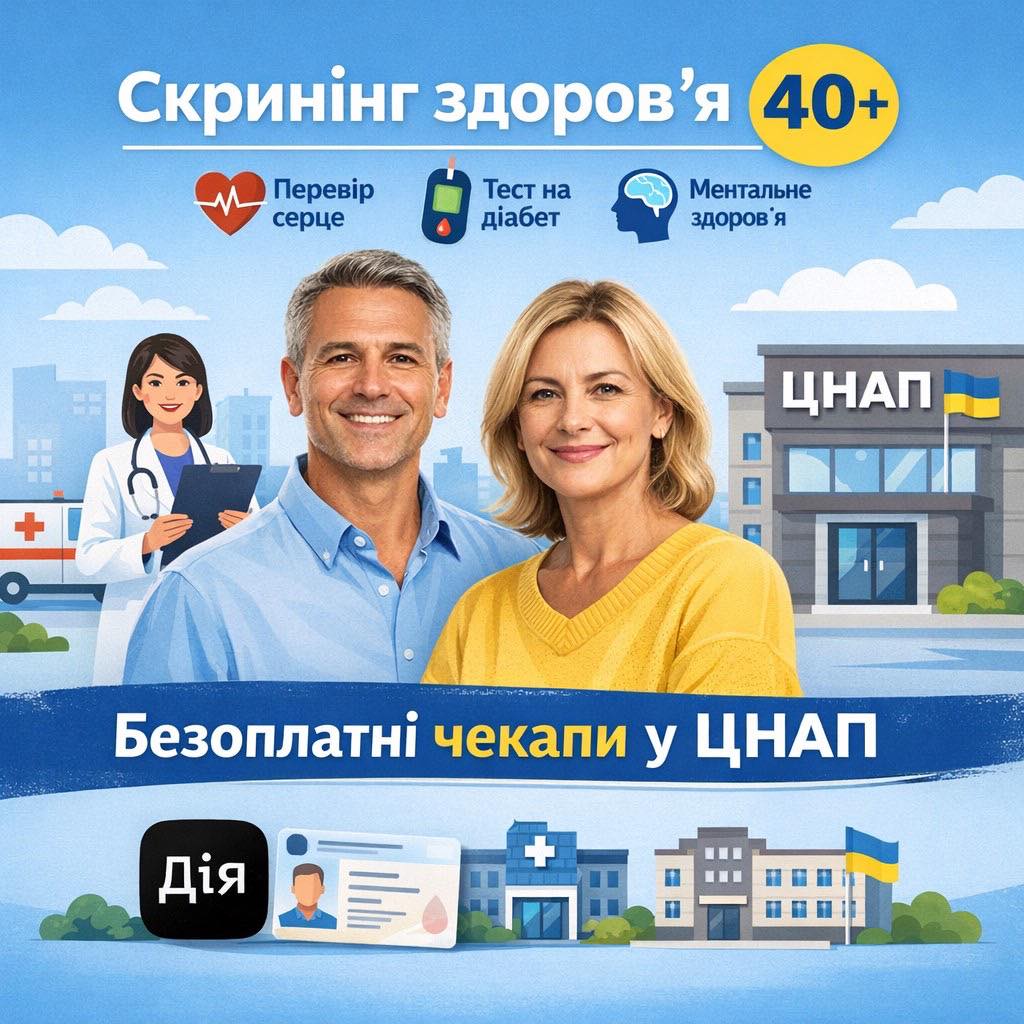 Медичні чекапи у ЦНАП: Скринінг здоров’я 40+ З 2026 року кожна людина віком …