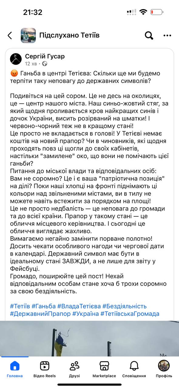 Люди майже добу без світла, половина громади без інтернету, аварійні бригади працюють без пауз. І на цьому тлі — обурення через розірвані прапори, які пошкодив сильний вітер.