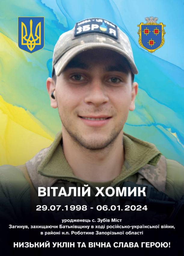 Минає два роки з дня, як у бою за нашу свободу загинув Віталій Хомик — солдат Збройних Сил України, 117-ї окремої механізованої бригади, позивний «Боксер».