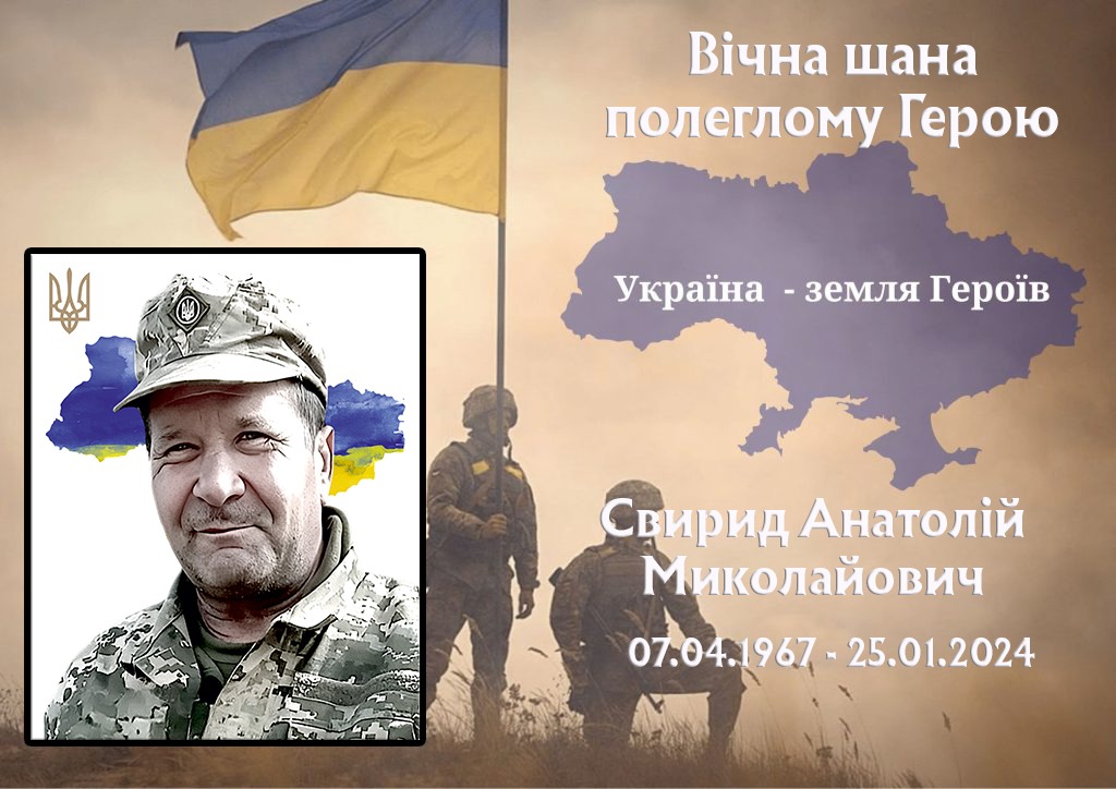 Минає друга річниця з дня смерті Героя нашої громади — Свирида Анатолія Миколайовича, який віддав своє життя, захищаючи незалежність і територіальну цілісність України.