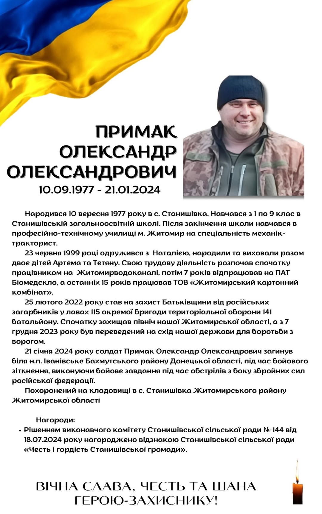 🇺🇦 Минає друга річниця, як загинув 🕯️ Примак Олександр Олександрович, 10.09.1977-21.01.2024