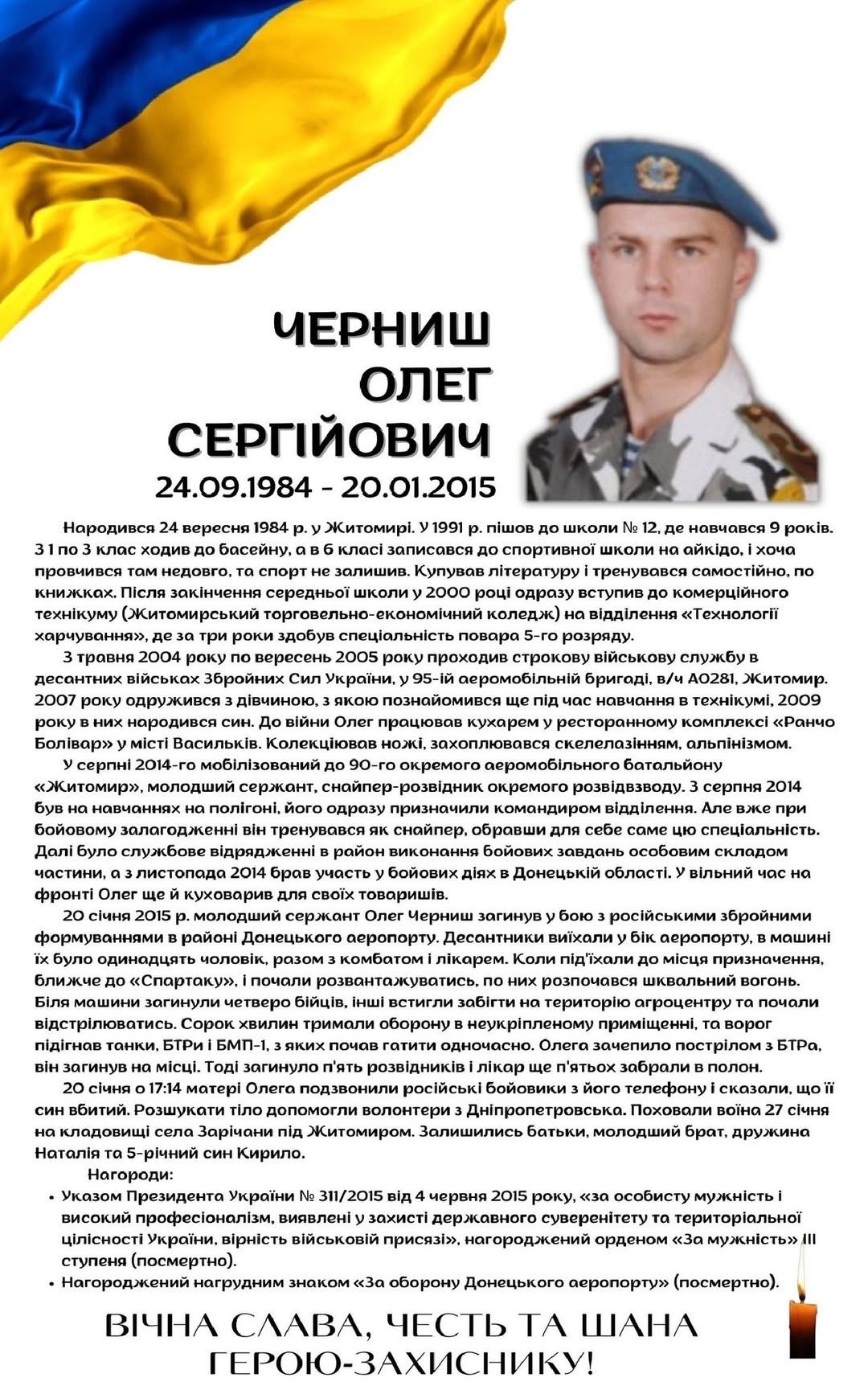 🇺🇦 Минає одинадцята річниця, як загинув 🕯️ Черниш Олег Сергійович, 24.09.1984-20.01.2015