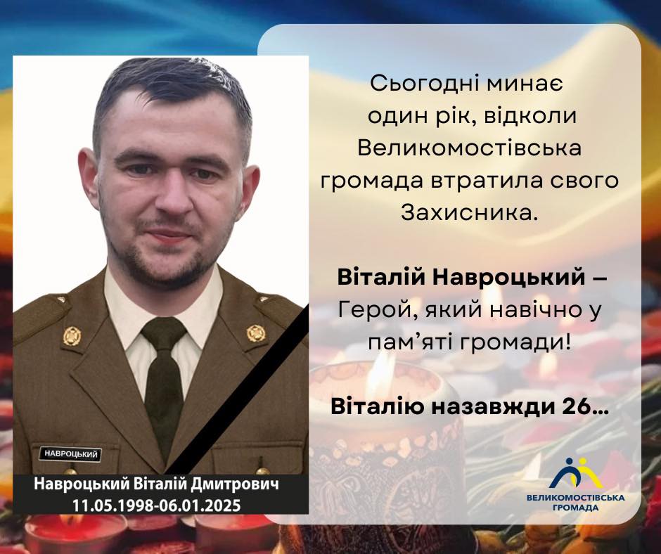 Минає рік, відколи Великомостівська громада втратила свого Захисника — Віталія Навроцького.