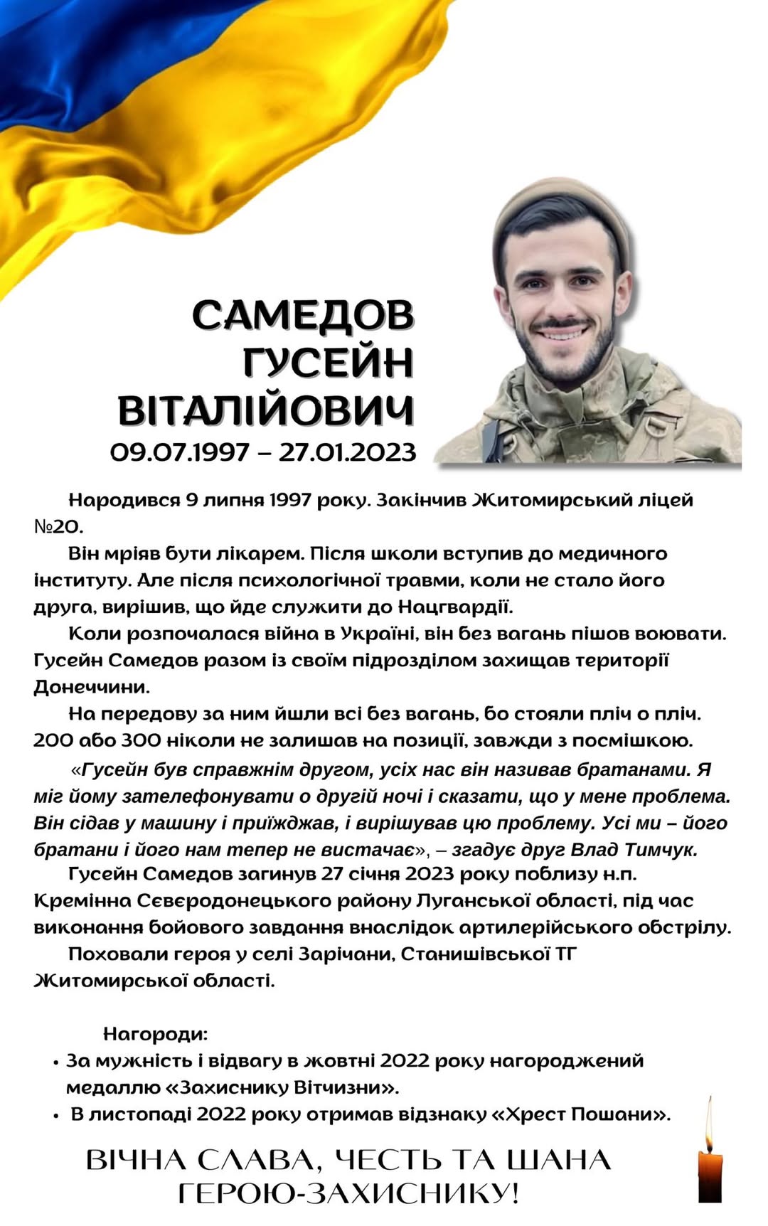 🇺🇦 Минає третя річниця, як загинув 🕯️ Самедов Гусейн Віталійович, 09.07.1997-27.01.2023