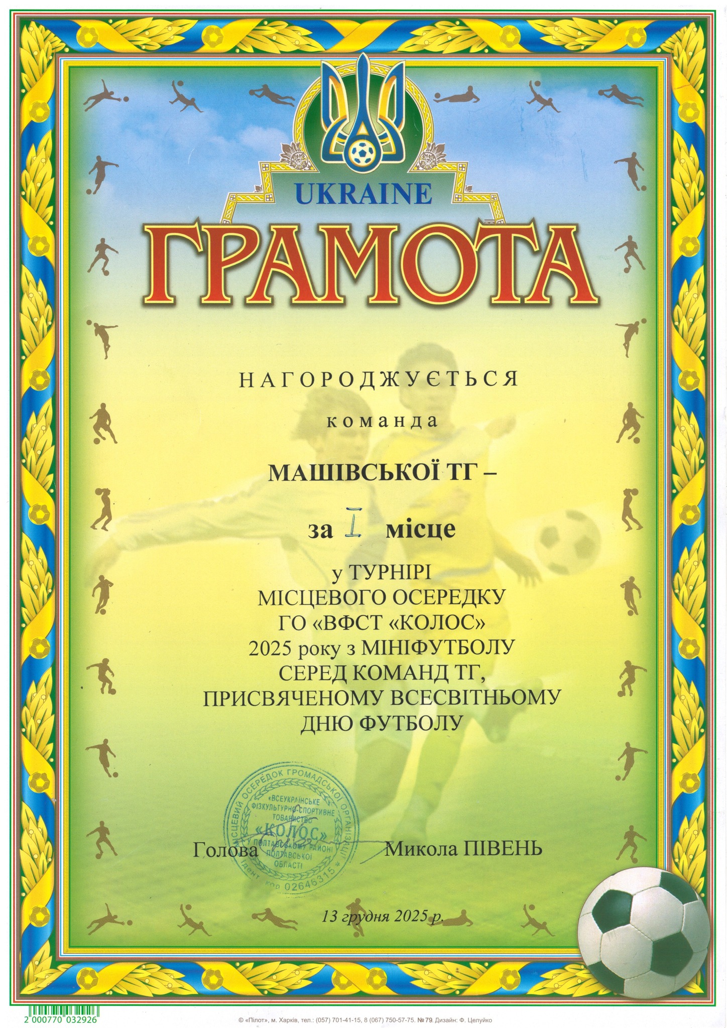 Минулими вихідними, за ініціативи та підтримки Місцевого осередку ГО «ВФСТ «Колос» у Полтавському районі, на базі Коломацької сільської територіальної громади Полтавської області, відбувся турнір з мініфутболу присвячений Всесвітньому дню футболу. У заході взяли участь футбольні команди: