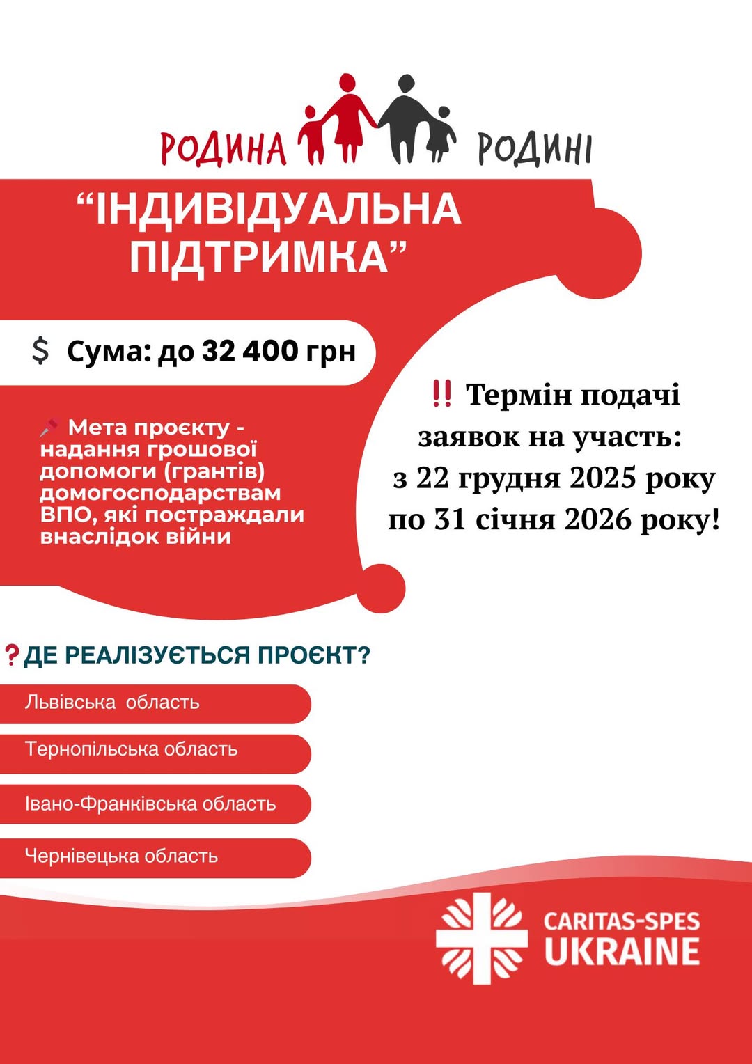 У темі листа просимо вказати: проєкт «Родина-Родині 25/26 і своє прізвище та ініціали»