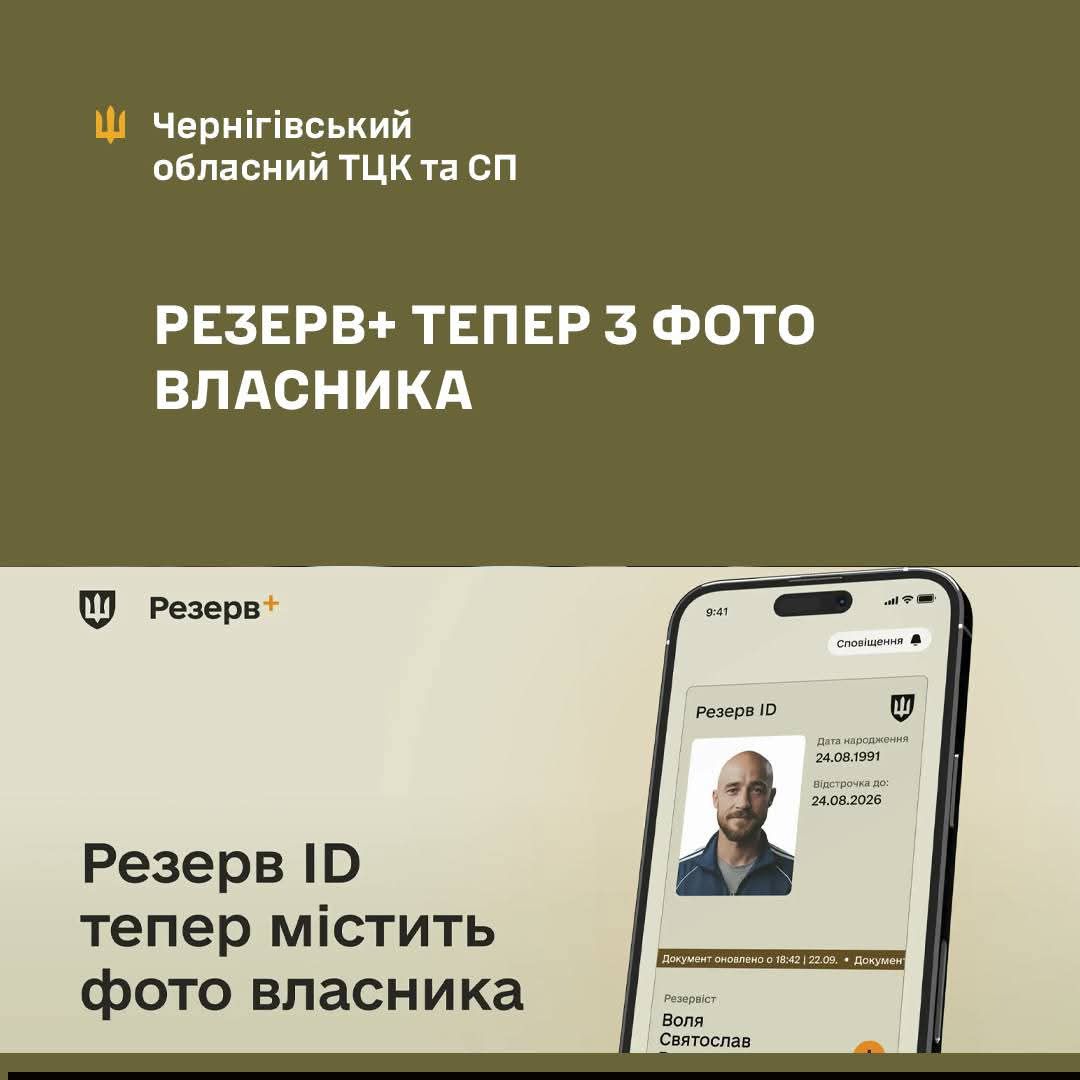 Міноборони оновило застосунок Резерв+: відтепер в електронному документі (Резерв ID) автоматично відображатиметься фото власника.