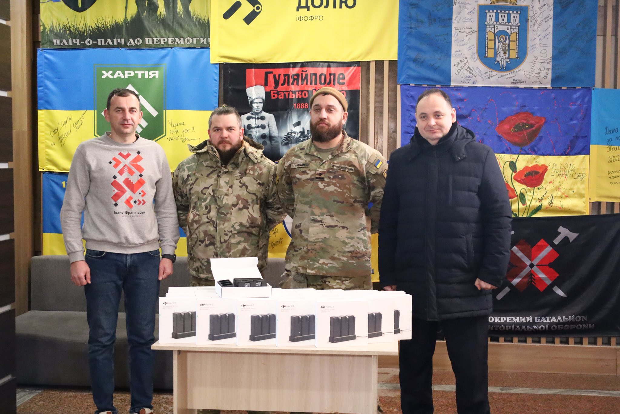 Міська рада спільно з Благодійним фондом “Сила добра ІФ”» реалізували важливий проєкт — «Придбання та передача на баланс 12 бригади спеціального призначення НГУ “Азов” комплектів акумуляторів та зарядних пристроїв до БПЛА типу Mavic».