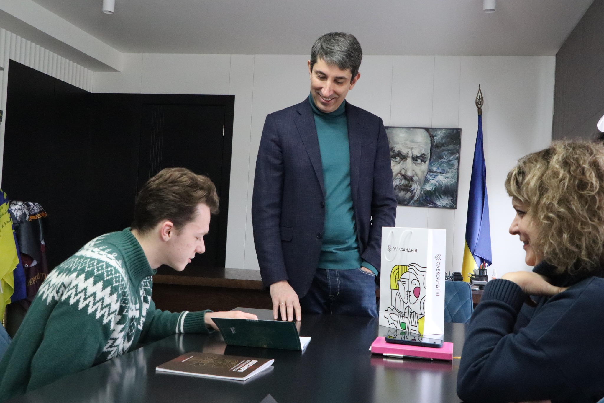 Міський голова Сергій Кузьменко зустрівся з олександрійцем Богданом Машуровським, який уже три роки живе та навчається у Великій Британії.