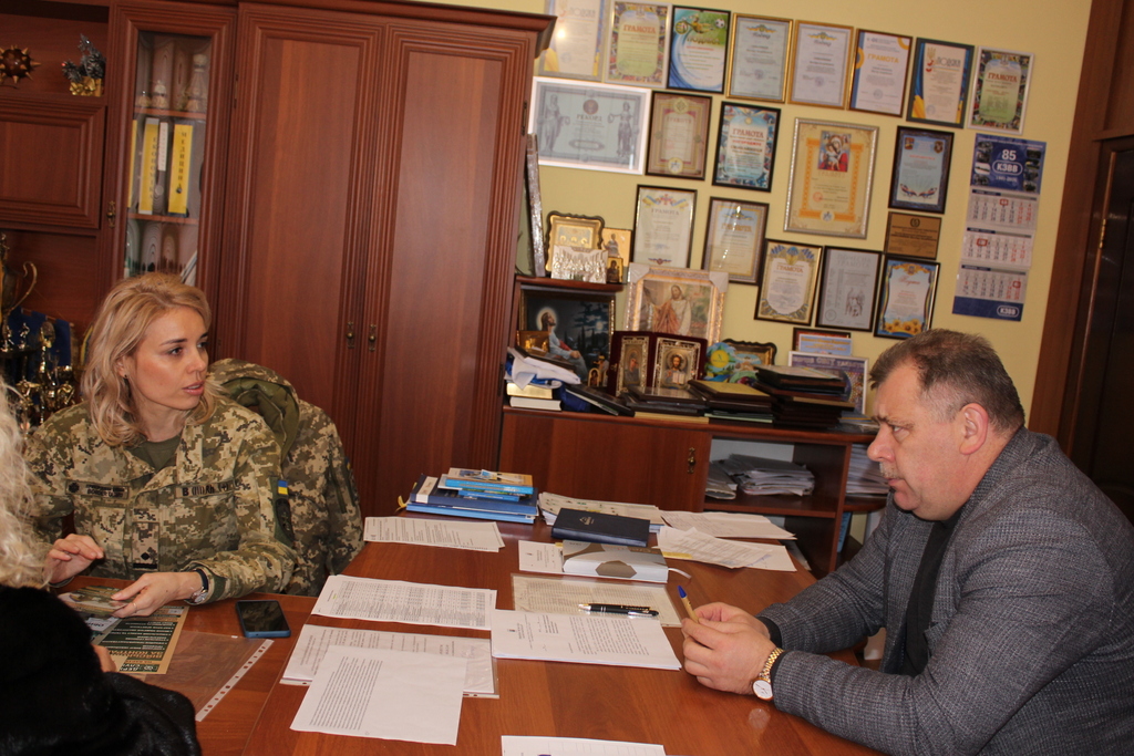Іршавський міський голова Віктор Симканинець провів робочу зустріч з представницями відділу рекрутингу 27 -го прикордонного загону ім. Героїв Карпатської Січі, що в Мукачеві, – заступниця начальника відділу рекрутингу Ганна Гавриленко та провідна психологиня відділу Людмила Притула.