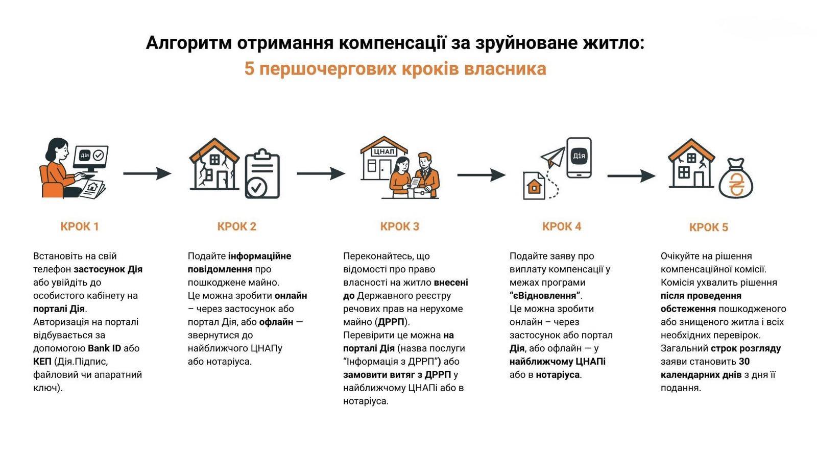 ‼️НАГАДУВАННЯ про 5 першочергових кроків власника зруйнованого або пошкодженого житла для отримання компенсації❗️