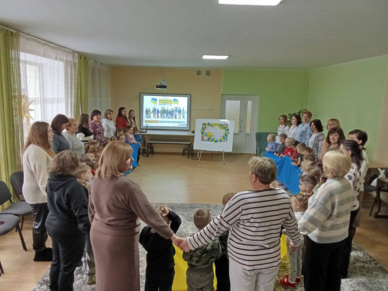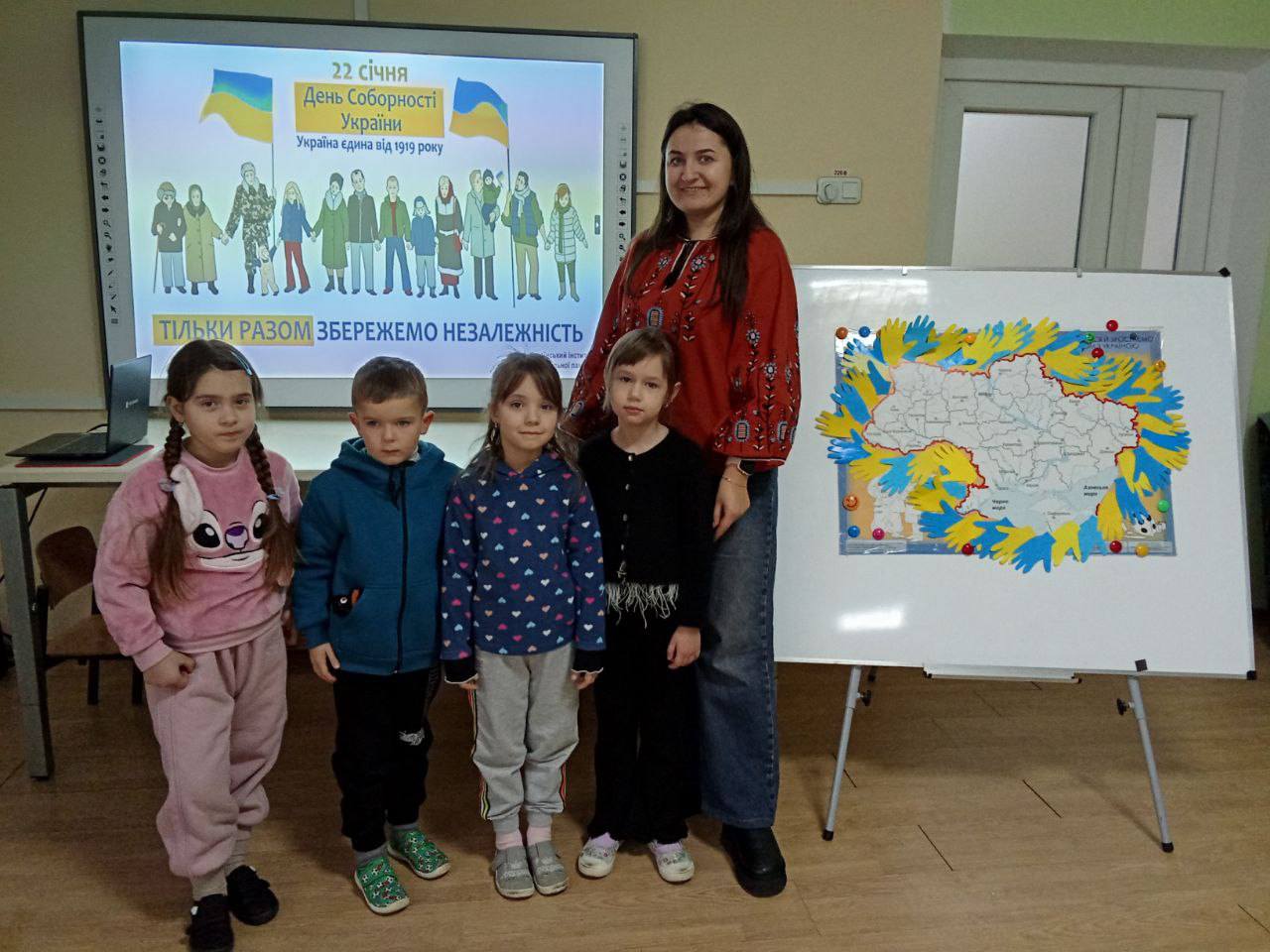 Сьогодні День Соборності України відзначили у Мостиському ЗДО “Віночок” (директор Марія ДОРОШ) створивши ланцюг єдності, співаючи Гімн України.