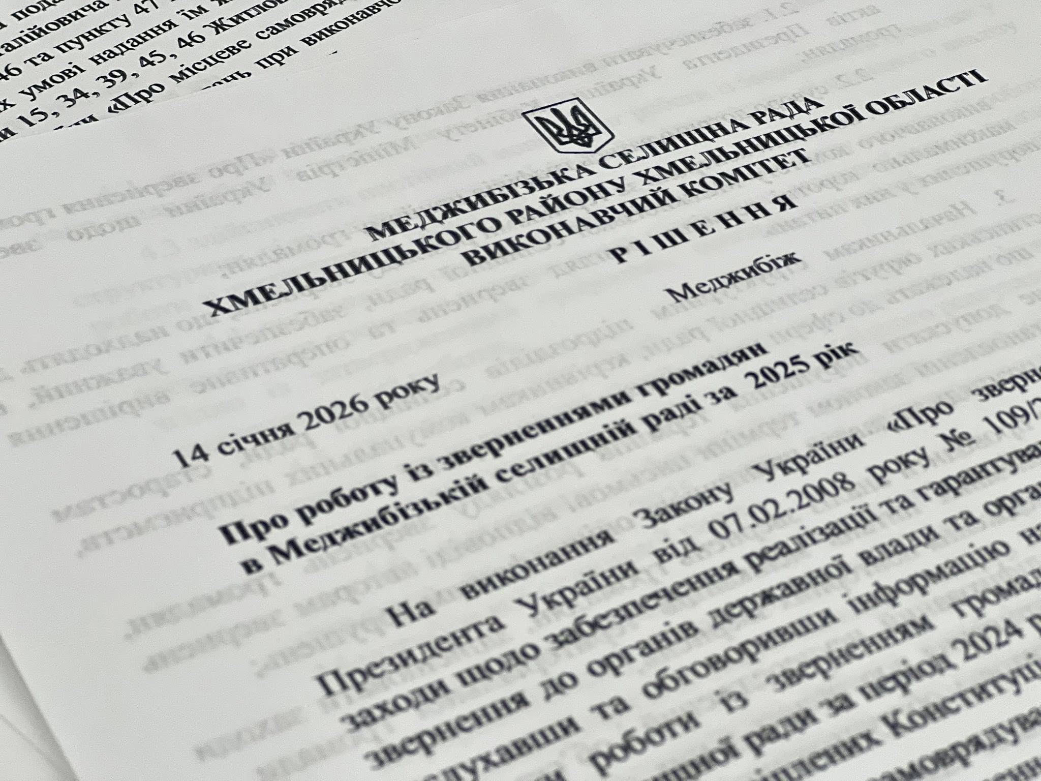 – про підсумки роботи зі зверненнями громадян у виконавчому комітеті Меджибізької селищної ради;