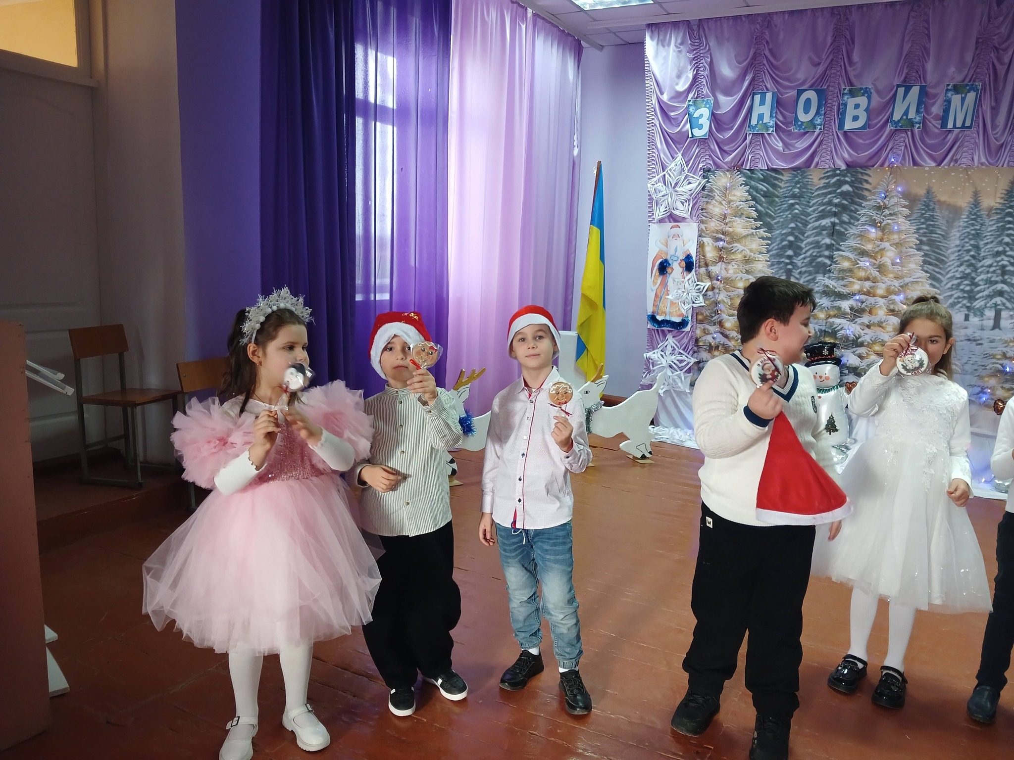 25 грудня 2025 року у гімназії відбувалися свята – новорічні ранки для учнів 1-4 класів та 5-6 класів. Свято відкрила директор гімназії Карайван Н.В., привітавши всіх з наступаючим Новим роком.