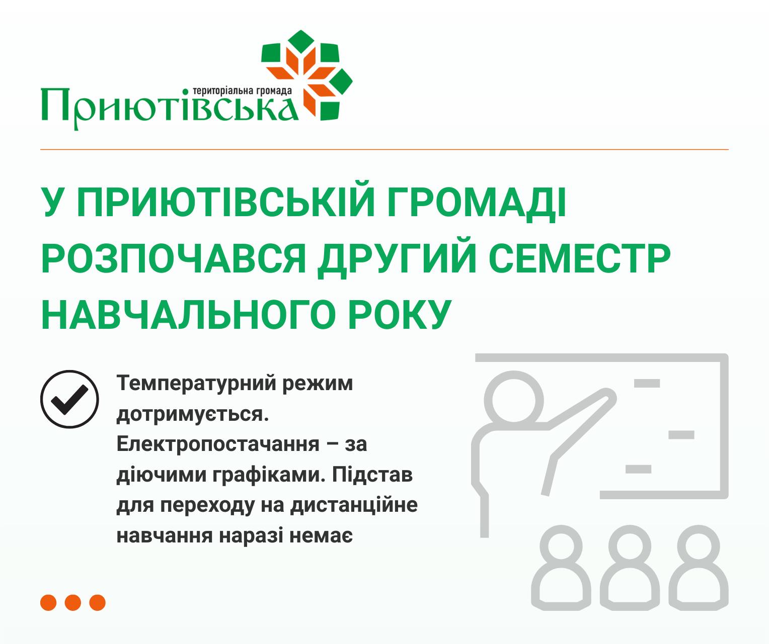 Навчання у закладах освіти Приютівської громади повернулося до звичного ритму після зимових канікул. Усі школи та інші освітні установи працюють очно, без змін у форматі освітнього процесу.