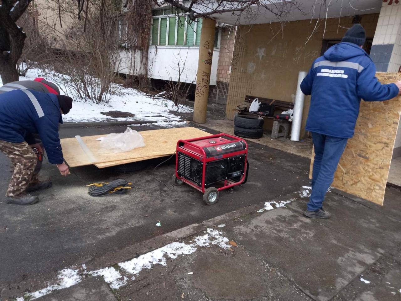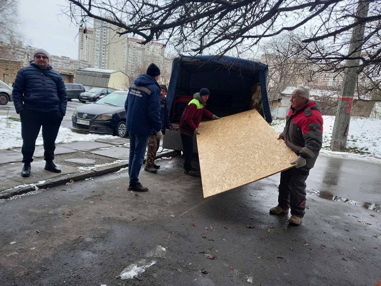 Сьогодні працівники КП «Керуюча компанія Солом’янського району м. Києва» протягом усього дня зашивали вікна мешканців 🪟 будинку на вул. Ніжинській QSB-плитами. Просто робота заради людей.