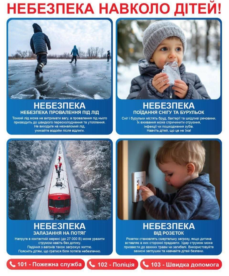 🌨️Нагадуємо про необхідність дотримання правил безпеки з метою збереження життя та здоров’я дітей у холодний період року. Закликаємо батьків, педагогів і всіх небайдужих приділяти особливу увагу поведінці неповнолітніх та регулярно проводити з ними профілактичні роз’яснювальні бесіди.