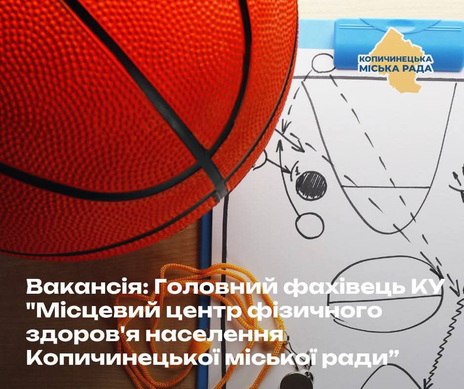 Нагадуємо, що ми запрошуємо в команду міської ради активну, самодисципліновану та мотивовану людину на посаду головного фахівця КУ “Місцевий центр фізичного здоров’я населення Копичинецької міської ради”.