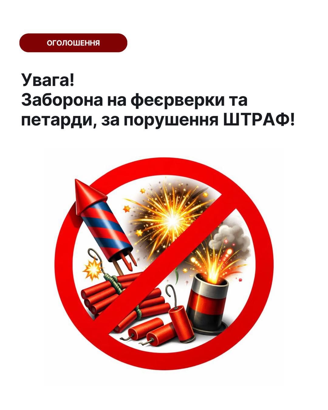 ❗️❗️❗️Нагадуємо, що на новорічні свята і протягом усього періоду дії воєнного стану в Україні заборонене використання феєрверків, салютів і петард.