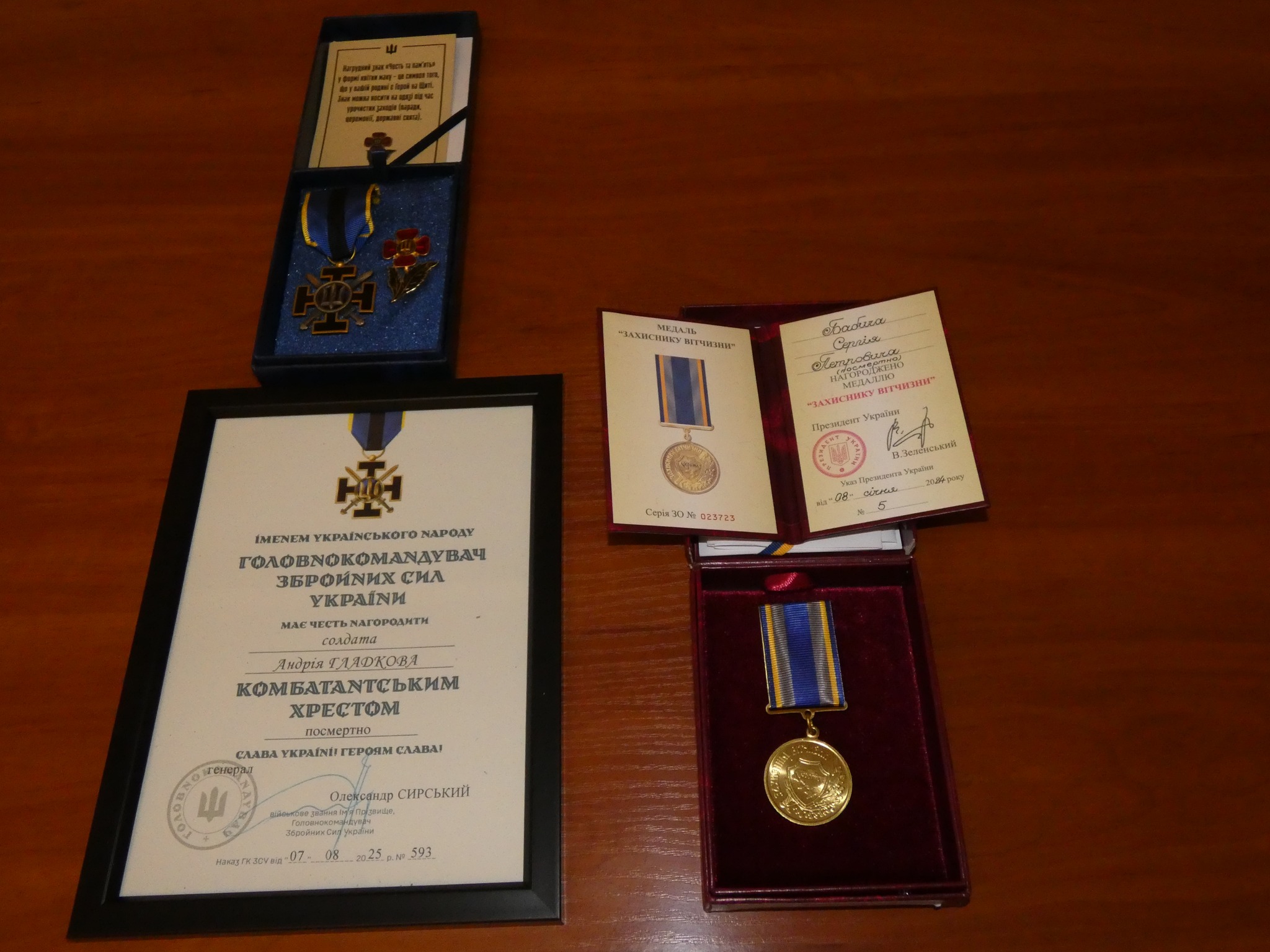 🔹Нагрудним знаком «Комбатанський хрест» нагороджено Олександра Савіцького та Андрія Гладкова.