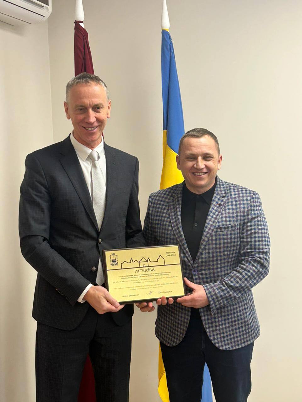Подякували за дворічну історію партнерства між нашими містами та всю ту допомогу, яке Алуксне надало Хотину.