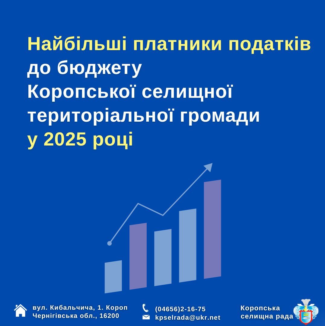 Найбільші платники за 2025 рік до бюджету громади Інформуємо про найбільших пл…