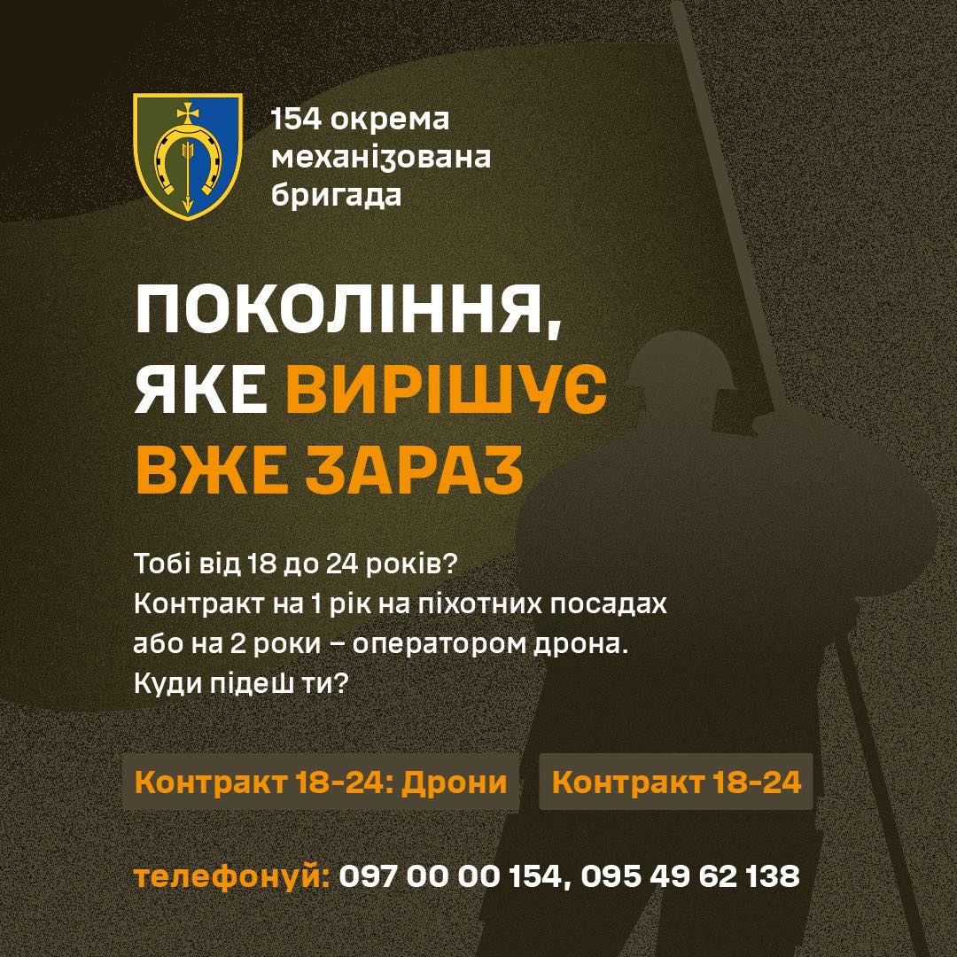 👍 Шукаєте першу роботу, яка надасть цінні знання та практичні навички? 154 окрема механізована бригада пропонує унікальні можливості для професійного зростання та захисту Батьківщини. Ми ретельно навчаємо наших бійців, забезпечуємо практичний досвід і ставимо високі цілі. Термін контракту чітко визначений, винагорода – гідна.