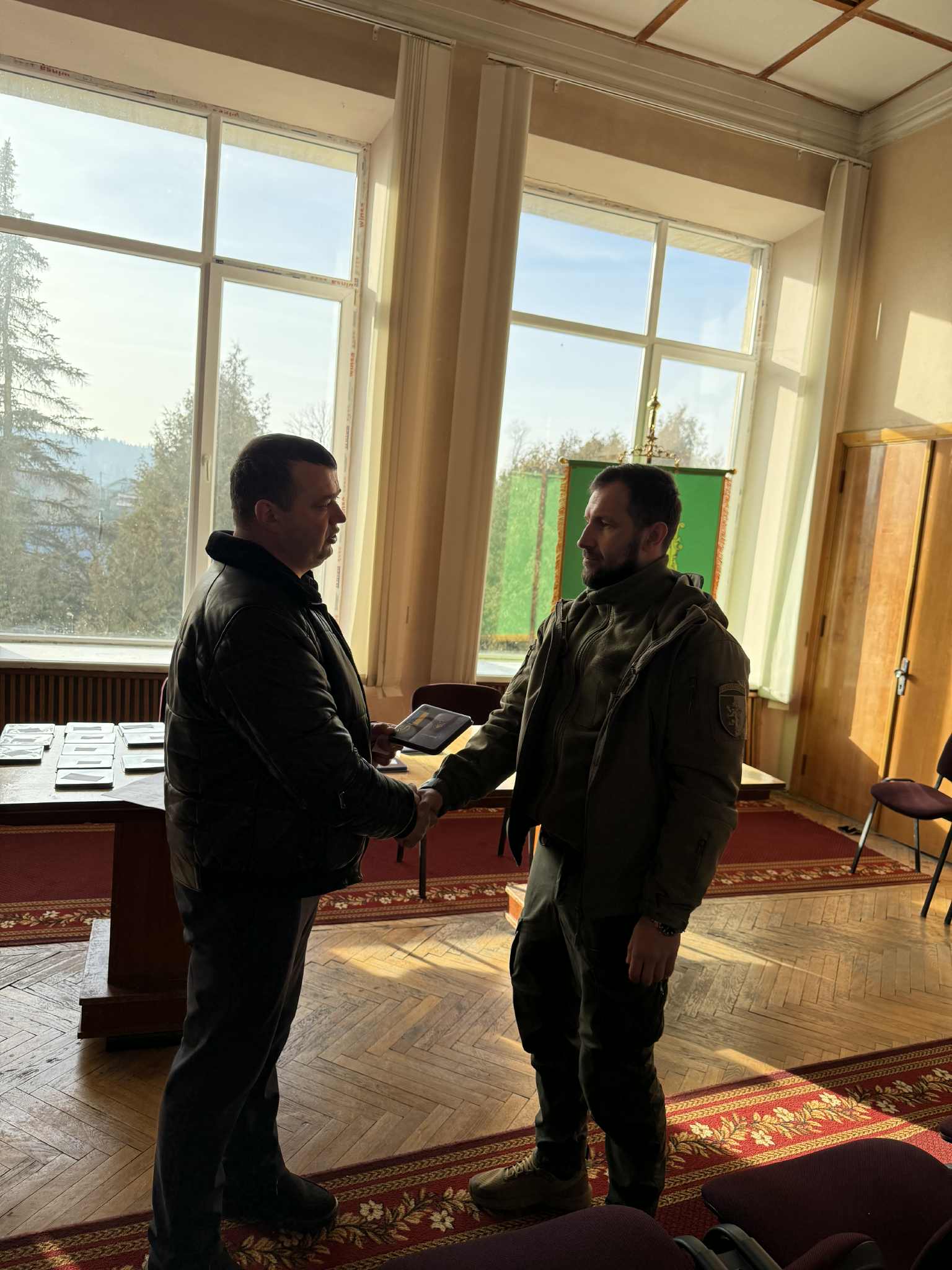 Сьогодні, відповідно до розпорядження міського голови №315-ОД від 04.12.2025 року, відбулося нагородження військових, які сумлінно виконували обов’язки з охорони важливих об’єктів та забезпечення громадського порядку на Турківщині.