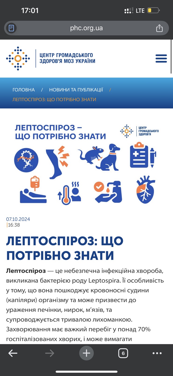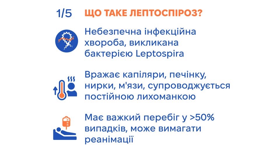 Лептоспіроз – хвороба з високою летальністю (до 20% випадків лептоспірозу може закінчуватись смертю хворої людини) уражає кровоносні судини, печінку, нирки, м’язи, може викликати серйозні ускладнення, зокрема менінгіт, міокардит чи легеневу кровотечу.
