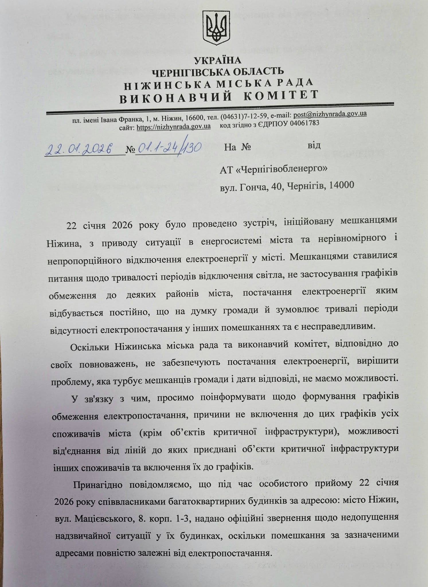 За підсумками зустрічі вкотре було направлено офіційне звернення до керівництва НЕК «Укренерго» з вимогою скоригувати графіки відключень у Ніжині та забезпечити їхню справедливість.✍️