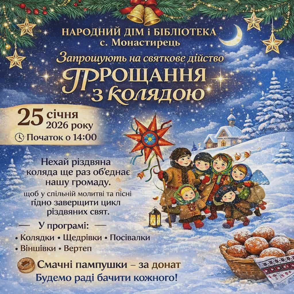 Народний дім та бібліотека с. Монастирець запрошує на прощання з Колядою!