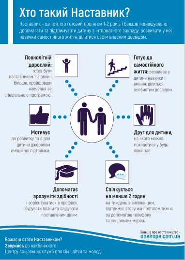 Головна мета наставництва — допомогти дитині побудувати довірливі стосунки, краще адаптуватися до дорослого життя та повірити у власну цінність.