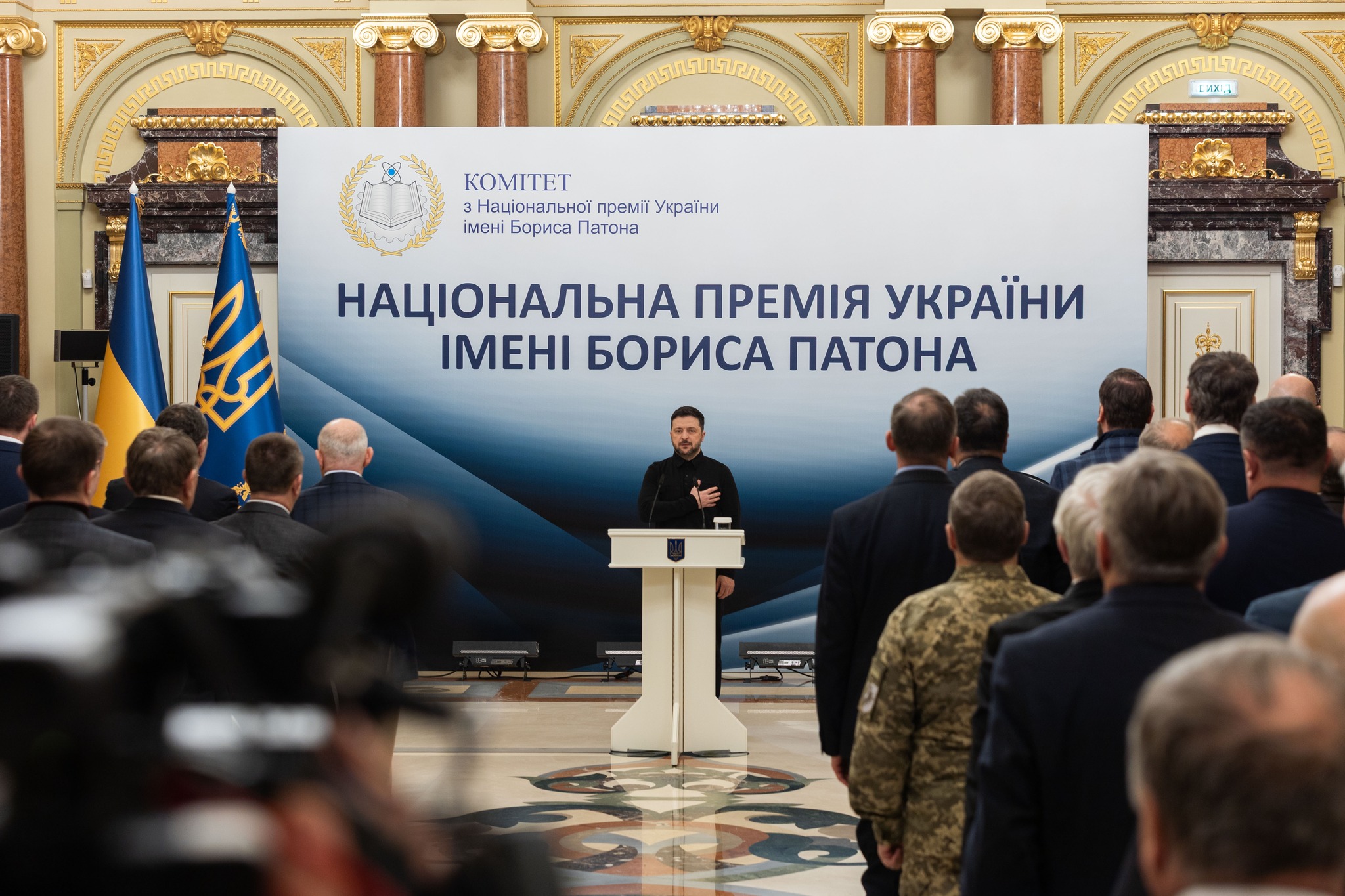 Сьогодні вручив дипломи та почесні знаки лауреатам Національної премії України імені Бориса Патона 2025 року. Вітаю кожного й кожну з перемогою в цьогорічній премії. Сімдесят три науковці. Десять робіт. І значна частина з них містить державну таємницю.