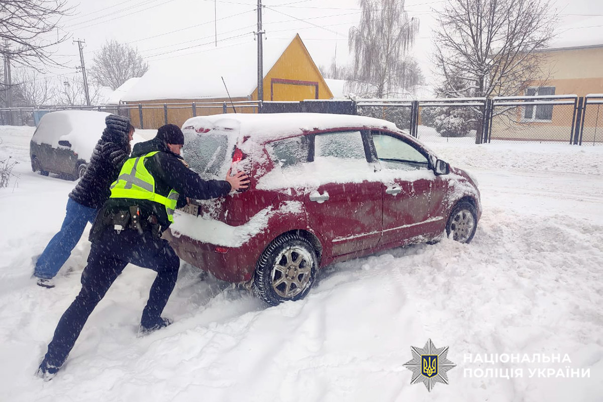 Останніми днями збільшилась кількість водіїв, які потрапили у халепу через погодні умови. Поліцейські всіляко їм допомагають та закликають за можливості утриматись від далеких поїздок. А якщо це неможливо — неухильно дотримуватися правил дорожнього руху.